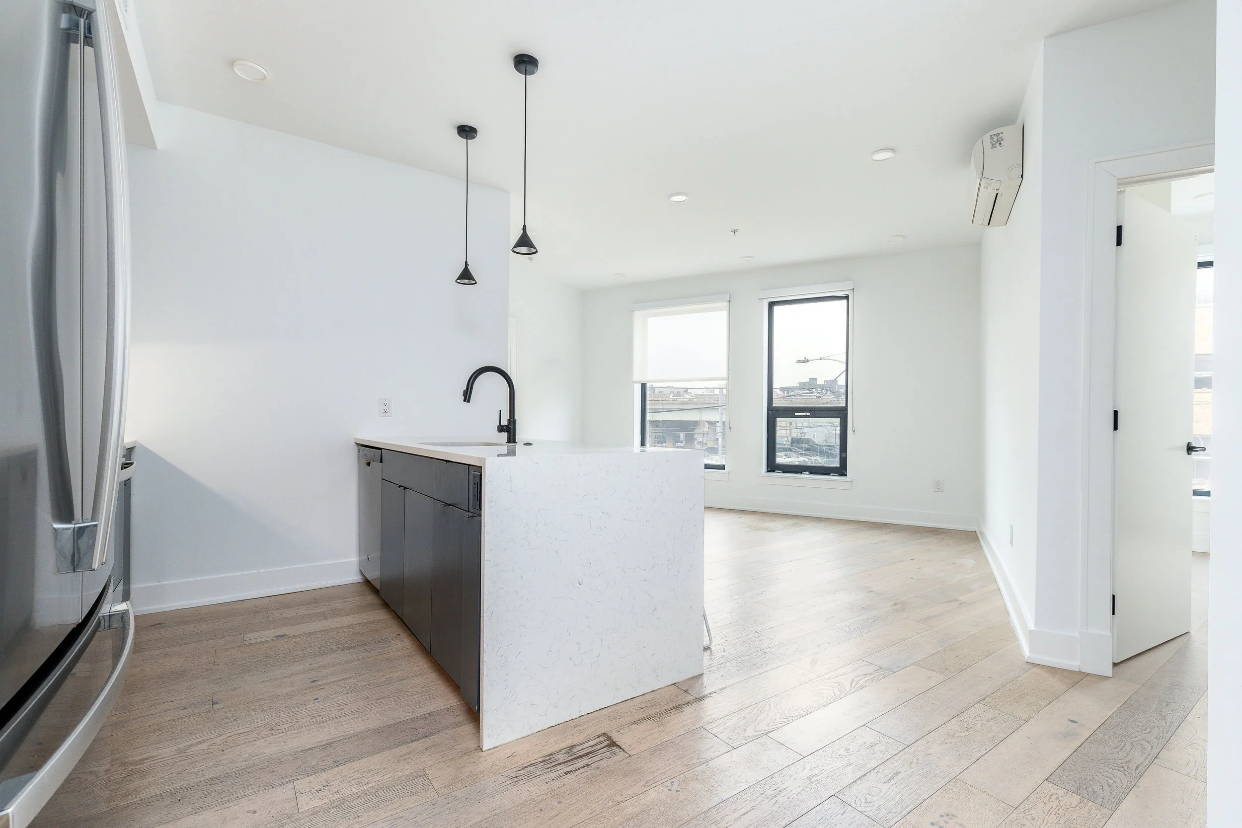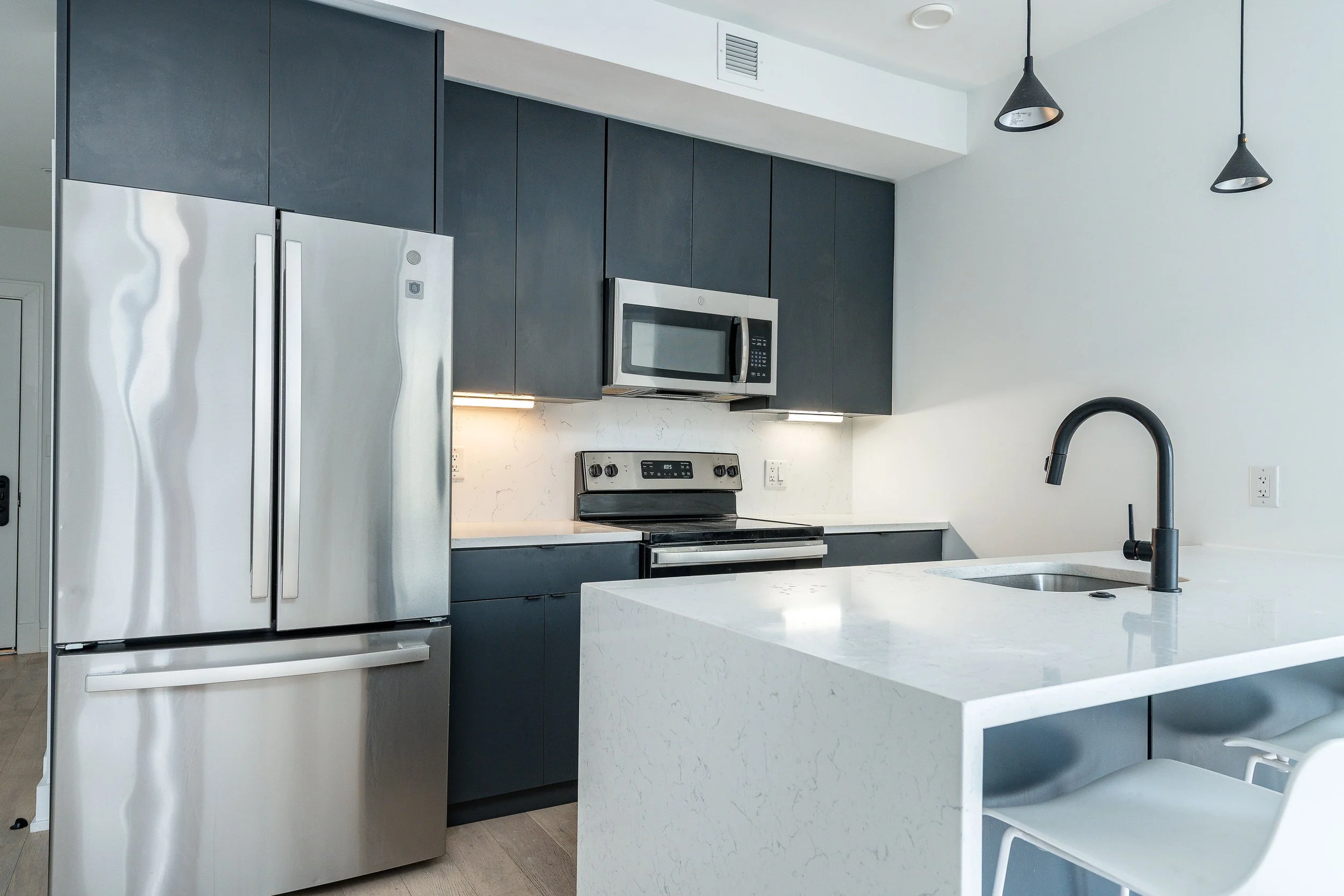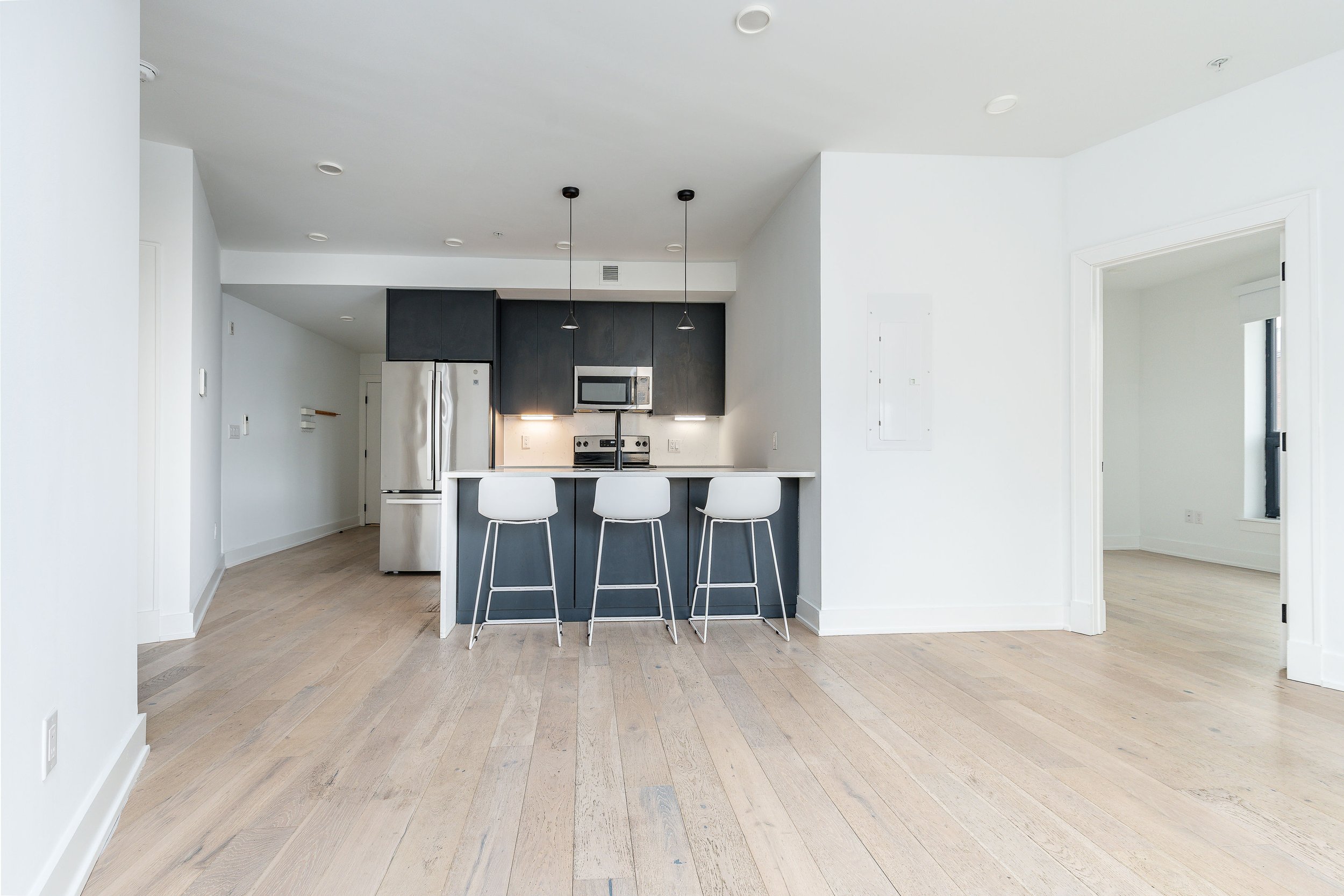 The three-bedroom residences at The Avenue are designed for space, flexibility, and modern living. Generous open layouts maximize light and flow, while expansive windows, hardwood flooring, and recessed lighting create a bright, elevated feel. With abundant closet storage and thoughtfully planned interiors, these homes are ideal for co-living arrangements, roommates, or families seeking room to grow. Contemporary kitchens feature stainless steel appliances and sleek cabinetry, and in-home washers and dryers add everyday convenience—bringing together style, function, and comfort in the heart of Fishtown.